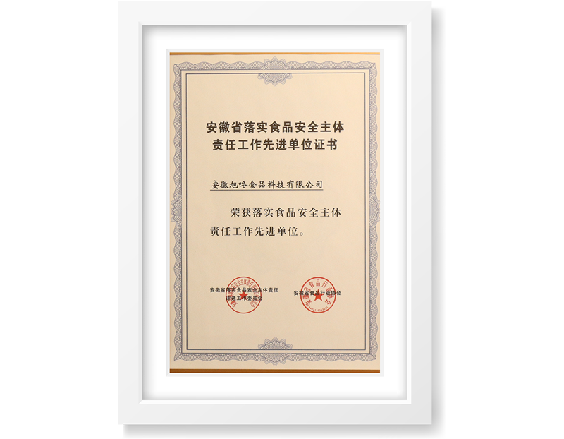 2024年10月 安徽省落实食品安全主体责任工作先进单位