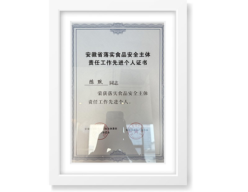 2024年度 安徽省落实食品安全主体责任工作先进个人证书--陈默