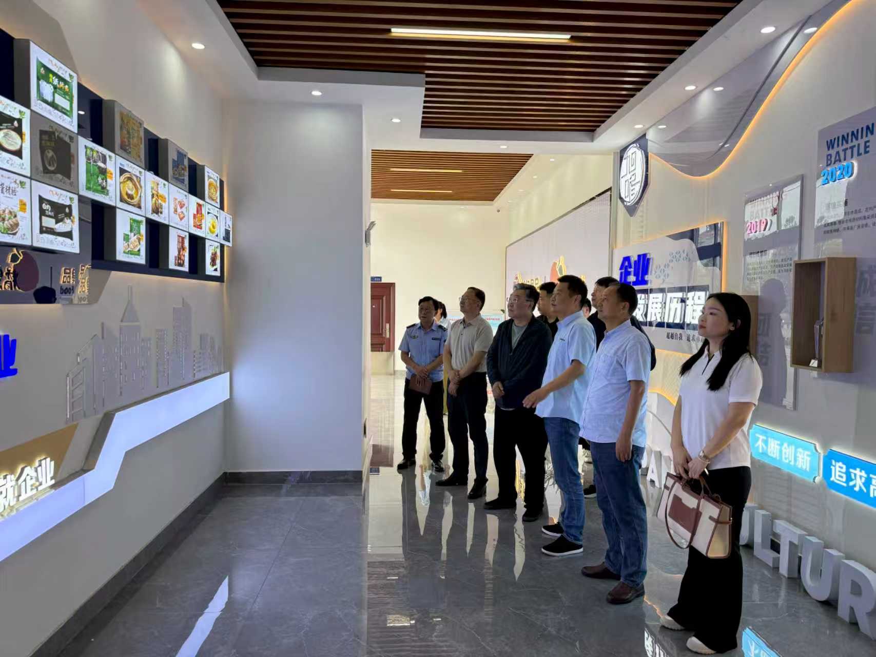 调研中,市监局领导参观厂区车间、仓库等,了解旭咚公司整个发展历程,目前的生产规模,销售的相关渠道及年销售量等公司运营相关情况。